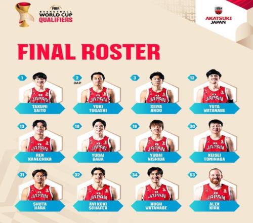 作为对手,日本男篮也是公布了他们的12人名单,最值得关注的就是他们的归化中锋使用了年纪更大、实力更弱的柯克,没有用更年轻也更厉害的霍金森。