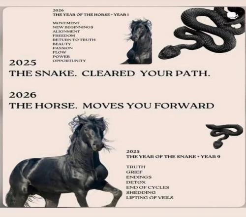 而那张中国传统生肖图片上的祝福意思为:“2025蛇年,为你清理道路。2026马年,愿你一路向前。”