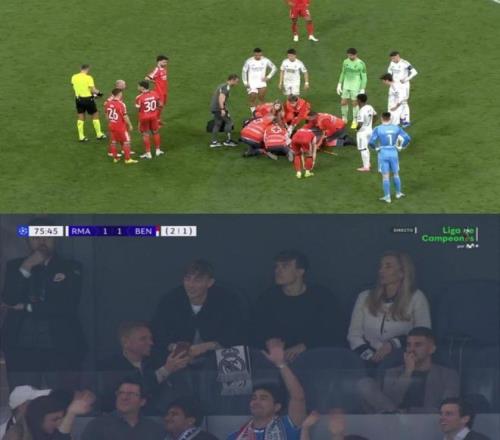 而本场比赛没有登场的皇马中卫赫伊森,再次惹出争议。在队友阿森西奥重伤接受救治的揪心时刻,这位西班牙国脚却在看台打视频电话,并且面对镜头嬉笑打闹。