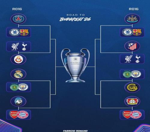 阿森纳将在欧冠八分之一决赛对阵勒沃库森或者亚特兰大,抽签将在周五进行。