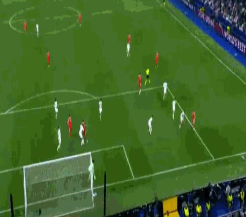 第38分钟,里奥斯劲射,库尔图瓦做出精彩扑救